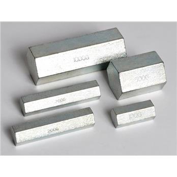 Set of five zinc-plated hexagonal masses supplied in a sturdy cardboard box. Includes one each of 100g, 500g, and 1000g, and two each of 200g masses.