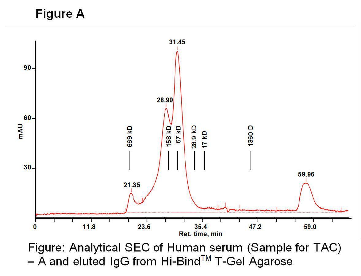 Hi-Bind* T-Gel-Agarose 1 ml^ Hi-Bind* T-Gel-Agarose, Stable, Reusable high binding capacity, for selective binding and rapid purification of all types of immunoglobulins from serum, ascites, tissue culture including IgG fragments, Maximum Flow Rate: 1800