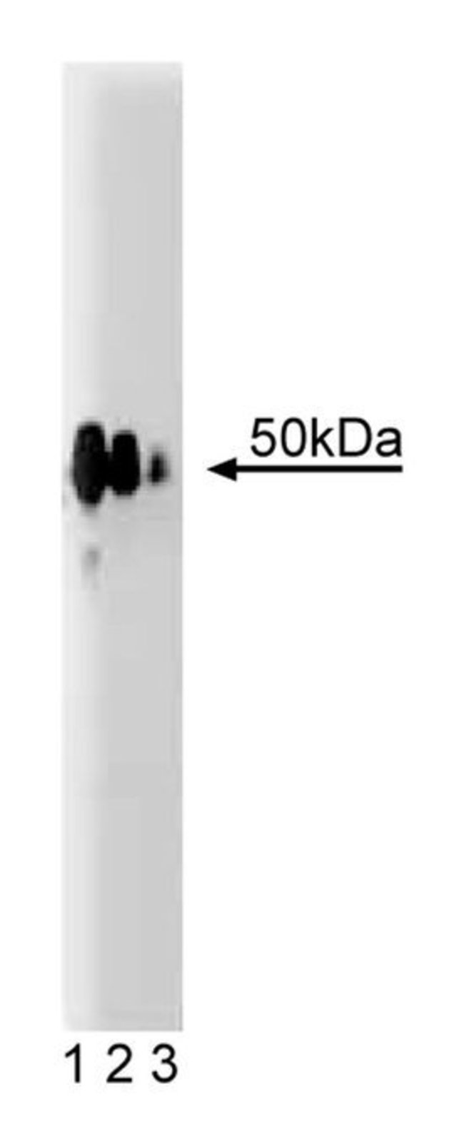Focal adhesions are cell structures terminal to the actin-stress fiber bundles. They attach cultured cells to their substratum or extracellular matrix. These adhesions occur through the integrin receptor molecules which link cytoskeletal proteins and extracellular matrix. The intracellular adhesion is composed of a number of proteins such as paxillin, VASP, vinculin, and the focal-adhesion kinases FAK and PYK2/CAKβ. Hic-5, also described as hydrogen peroxide inducible-mRNA, is a focal adhesion protein that binds to FAK and PYK2. It is ubiquitously expressed with the highest levels found in lung, spleen, and heart. Induction of Hic-5 is accomplished by hydrogen peroxide or TGFβ1 and is repressed in K-ras transformed cells. Like paxillin, Hic-5 is tyrosine phosphorylated in Src-transformed cells and is highly similar to paxillin in its primary structure. Both proteins contain LIM domains and LD motifs. In addition, Hic-5 localizes to focal adhesions and co-immunoprecipitates with PYK2/CAKβ in vivo. Thus, Hic-5 may be a substrate for CAKβ and play a role in signal transduction during proliferation, cell motility, and adhesion.Host Species: MouseClone: 34Isotype: IgG1Species Reactivity: RatImmunogen: Mouse Hic-5 aa. 73-186Formula Weight [Chemical]: 50kDaImmunofluorescence, Western Blotting