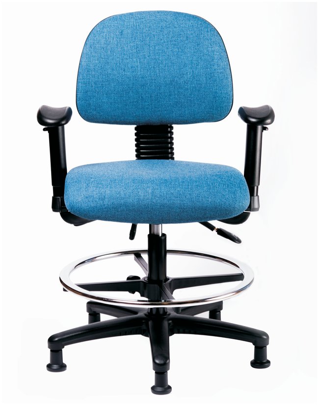 Fabric Chair - High Bench Height with Seat Tilt, Adjustable Arms, Chrome Foot Ring, and Stationary Glides in Fabric, Each
