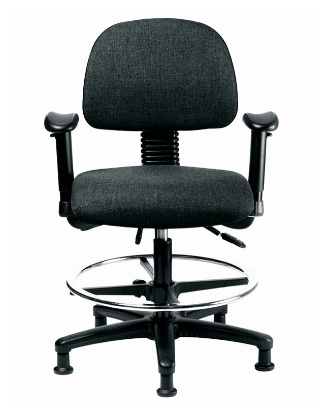 Fabric Chair - High Bench Height with Seat Tilt, Adjustable Arms, Chrome Foot Ring, and Stationary Glides in Fabric, Each