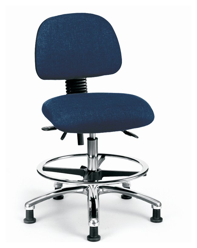 Fabric Chair Chrome - High Bench Height with Seat Tilt, Chrome Foot Ring, and Stationary Glides in Fabric, Each