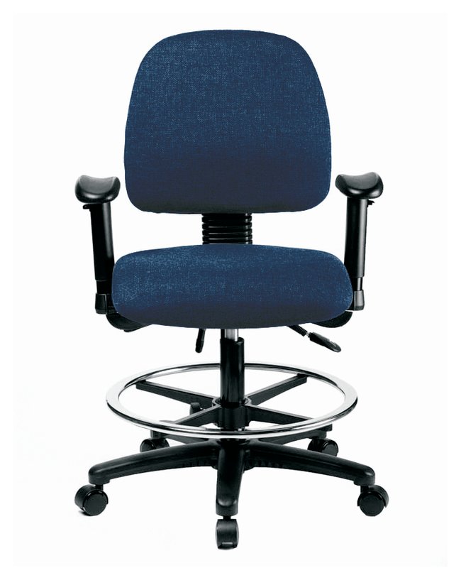 Fabric Chair - High Bench Height with Medium Back, Seat Tilt, Adjustable Arms, Chrome Foot Ring, and Casters in Fabric, Each