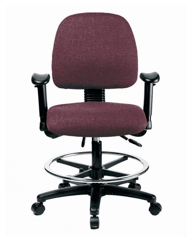 Fabric Chair - High Bench Height with Medium Back, Seat Tilt, Adjustable Arms, Chrome Foot Ring, and Casters in Fabric, Each