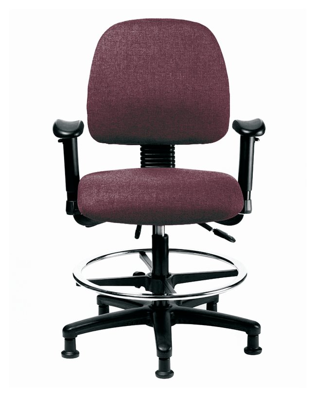 Fabric Chair - High Bench Height with Medium Back, Seat Tilt, Adjustable Arms, Chrome Foot Ring, and Stationary Glides in Fabric, Each