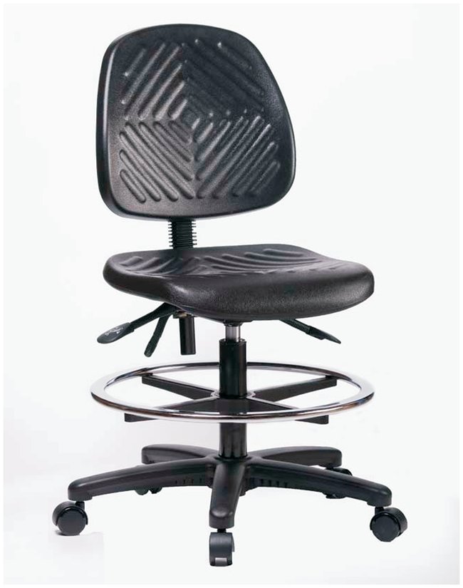 Fisherbrand™ Polyurethane Chairs with Medium Back are height adjustable for 42 in. work surface & feature ergonomic adjustments, chrome adjustable foot ring, & stationary glides. Self-skinning chemical, soil, & puncture resistant polyurethane makes this ideal for any environment.