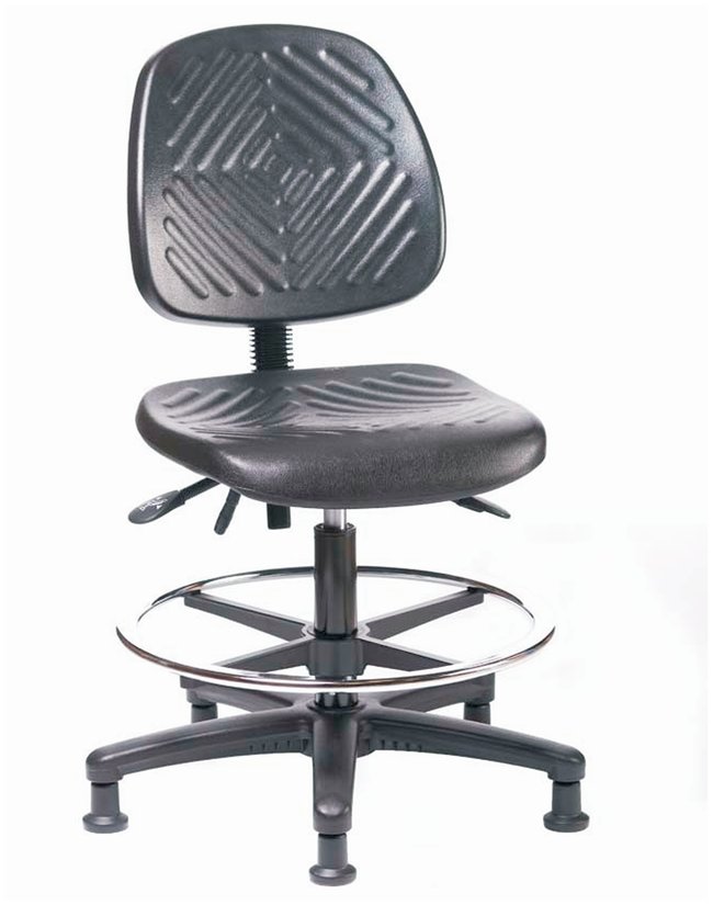 Polyurethane Chair - High Bench Height with Medium Back, Seat Tilt, Chrome Foot Ring, and Casters in Polyurethane, Each