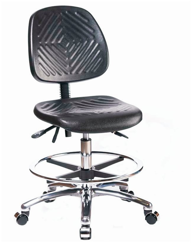 Fisherbrand™ Polyurethane Chairs with Medium Back in Chrome are height adjustable for 42 in. work surface & feature ergonomic adjustments, chrome adjustable foot ring, & stationary glides. Self-skinning chemical, soil, & puncture resistant polyurethane makes this ideal for any environment.