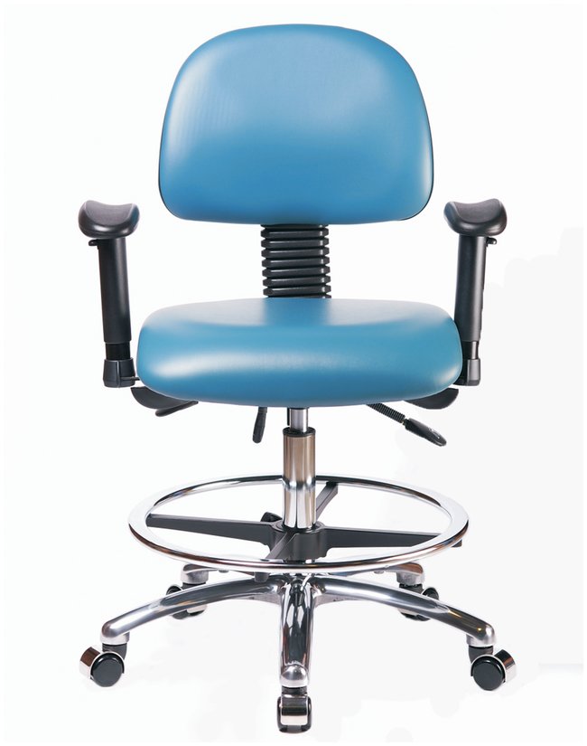 Fisherbrand™ Vinyl Chairs in Chrome are height adjustable for 36 in. work surfaces and feature ergonomic adjustments, adjustable arms, chrome adjustable foot ring, and stationary glides. Antibacterial/Antifungal Grade B vinyl in a variety of colors will suit any work space.
