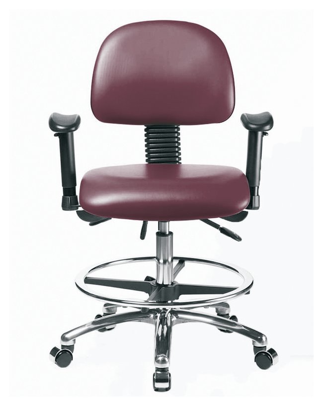 Vinyl Chair Chrome - Medium Bench Height with Adjustable Arms, Chrome Foot Ring, and Casters in Grade B Vinyl, Each