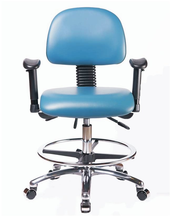 Fisherbrand™ Vinyl Chairs in Chrome are height adjustable for 36 in. work surfaces and feature ergonomic adjustments, adjustable arms, chrome adjustable foot ring, and stationary glides. Antibacterial/Antifungal Grade B vinyl in a variety of colors will suit any work space.