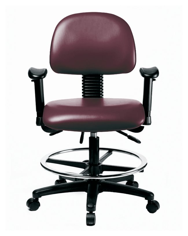 Fisherbrand™ Grade B vinyl Chairs are height adjustable for 36 in. work surfaces & feature ergonomic adjustments, adjustable arms, chrome adjustable foot ring, & self-braking casters. Antibacterial/Antifungal Grade B vinyl in a variety of colors will suit any work space.