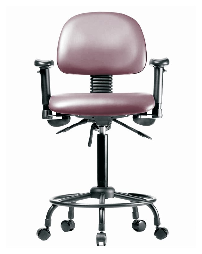 Fisherbrand™ Vinyl Chairs with Round Tube Base are height adjustable for 36 in. work surfaces and feature ergonomic adjustments, adjustable arms, fixed foot ring, and self-braking casters. Antibacterial/Antifungal Grade B vinyl in a variety of colors will suit any work space.
