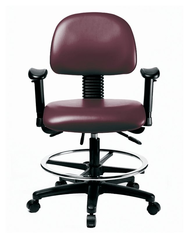 Fisherbrand™ Grade B vinyl Chairs are height adjustable for 36 in. work surfaces and feature ergonomic adjustments, adjustable arms, chrome adjustable foot ring, and self-braking casters. Antibacterial/Antifungal Grade B vinyl in a variety of colors will suit any work space.