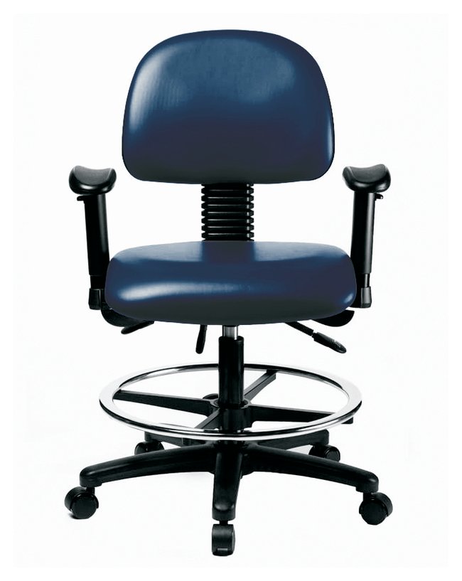 Fisherbrand™ Grade B vinyl Chairs are height adjustable for 36 in. work surfaces and feature ergonomic adjustments, adjustable arms, chrome adjustable foot ring, and self-braking casters. Antibacterial/Antifungal Grade B vinyl in a variety of colors will suit any work space.