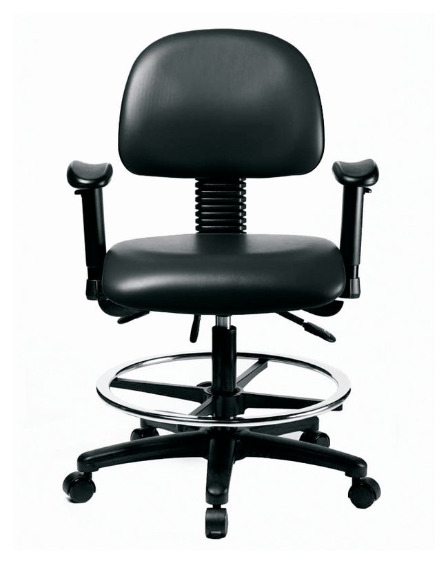 Vinyl Chair - Medium Bench Height with Seat Tilt, Adjustable Arms, Chrome Foot Ring, and Casters in Grade B Vinyl, Each