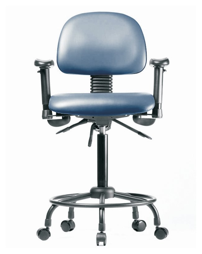 Vinyl Chair - Medium Bench Height with Round Tube Base, Seat Tilt, Adjustable Arms, and Casters in Grade B Vinyl, Each