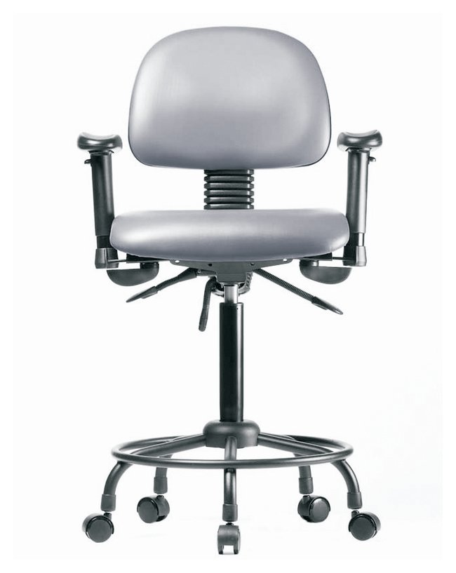 Fisherbrand™ Vinyl Chairs with Round Tube Base are height adjustable for 36 in. work surfaces and feature ergonomic adjustments, adjustable arms, fixed foot ring, and self-braking casters. Antibacterial/Antifungal Grade B vinyl in a variety of colors will suit any work space.