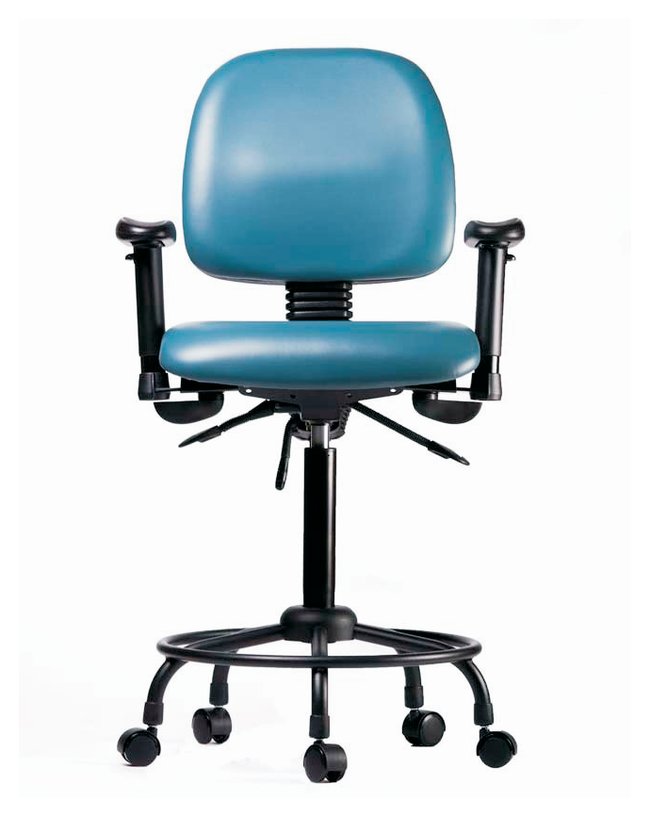 Fisherbrand™ Vinyl Chairs with Round Tube Base are height adjustable for 36 in. work surfaces and feature ergonomic adjustments, fixed foot ring, and self-braking casters. Antibacterial/Antifungal Grade B vinyl in a variety of colors will suit any work space.