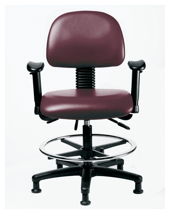Fisherbrand™ Grade B vinyl Chairs are height adjustable for 36 in. work surfaces and feature ergonomic adjustments, adjustable arms, chrome adjustable foot ring, and stationary glides. Antibacterial/Antifungal Grade B vinyl in a variety of colors will suit any work space.