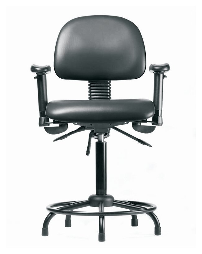 Vinyl Chair - Medium Bench Height with Round Tube Base, Adjustable Arms, and Stationary Glides in Grade B Vinyl, Each