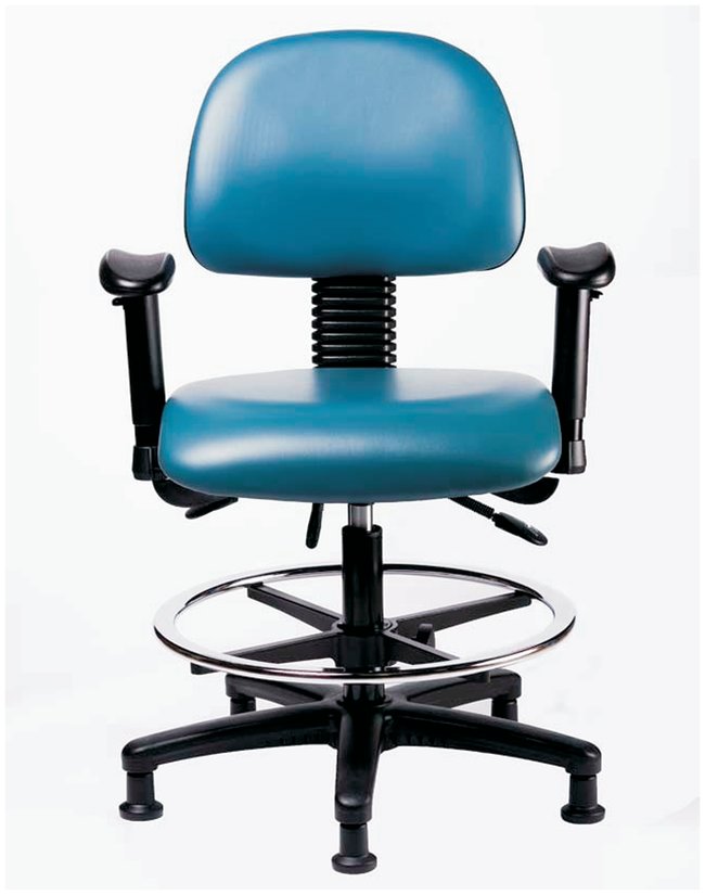 Fisherbrand™ Grade B vinyl Chairs are height adjustable for 36 in. work surfaces and feature ergonomic adjustments, adjustable arms, chrome adjustable foot ring, and stationary glides. Antibacterial/Antifungal Grade B vinyl in a variety of colors will suit any work space.