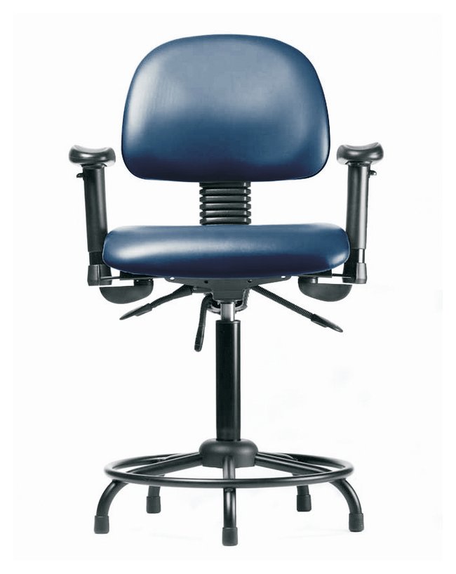Fisherbrand™ Vinyl Chairs with Round Tube Base are height adjustable for 36 in. work surfaces and feature ergonomic adjustments, adjustable arms, fixed foot ring, and stationary glides. Antibacterial/Antifungal Grade B vinyl in a variety of colors will suit any work space.