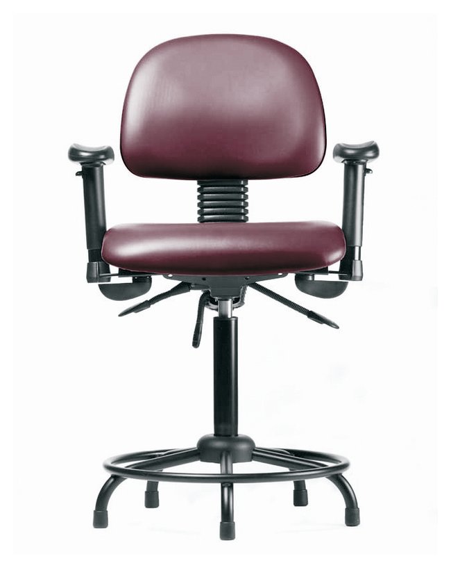 Fisherbrand™ Vinyl Chairs with Round Tube Base are height adjustable for 36 in. work surfaces and feature ergonomic adjustments, adjustable arms, fixed foot ring, and stationary glides. Antibacterial/Antifungal Grade B vinyl in a variety of colors will suit any work space.