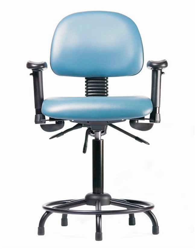 Fisherbrand™ Vinyl Chairs with Round Tube Base are height adjustable for 36 in. work surfaces and feature ergonomic adjustments, adjustable arms, fixed foot ring, and stationary glides. Antibacterial/Antifungal Grade B vinyl in a variety of colors will suit any work space.