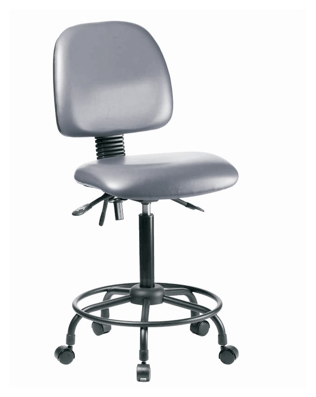 Fisherbrand™ Vinyl Chairs with Medium Back and Round Tube Base is height adjustable for 36 in. work surfaces and feature ergonomic adjustments, fixed foot ring, and self-braking casters. Antibacterial/Antifungal Grade B vinyl in a variety of colors will suit any work space.