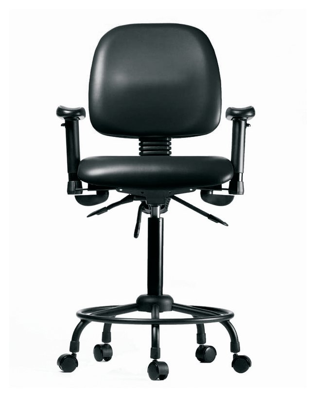 Fisherbrand™ Vinyl Chairs with Medium Back and Round Tube Base is height adjustable for 36 in. work surfaces and feature ergonomic adjustments, fixed foot ring, adjustable arms, and self-braking casters. Antibacterial/Antifungal Grade B vinyl in a variety of colors will suit any work space.