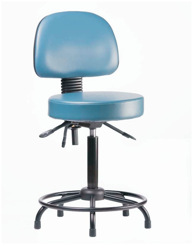 Fisherbrand™ Vinyl Stools with Back and Round Tube Base are height adjustable for 36 in. work surface and feature ergonomic adjustments, fixed foot ring, and stationary glides. Antibacterial/Antimicrobial Grade B vinyl in a variety of colors will suit any work space.