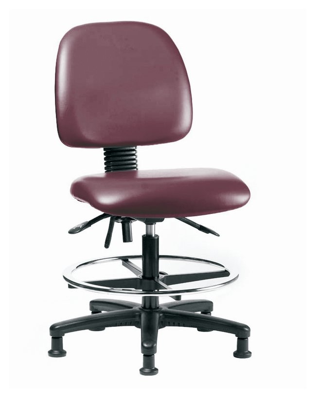Fisherbrand™ Vinyl Chairs with Medium Back are height adjustable for 36 in.work surfaces and feature ergonomic adjustments, larger back, chrome adjustable foot ring, and stationary glides. Antibacterial/Antifungal Grade B vinyl in a variety of colors will suit any work space.