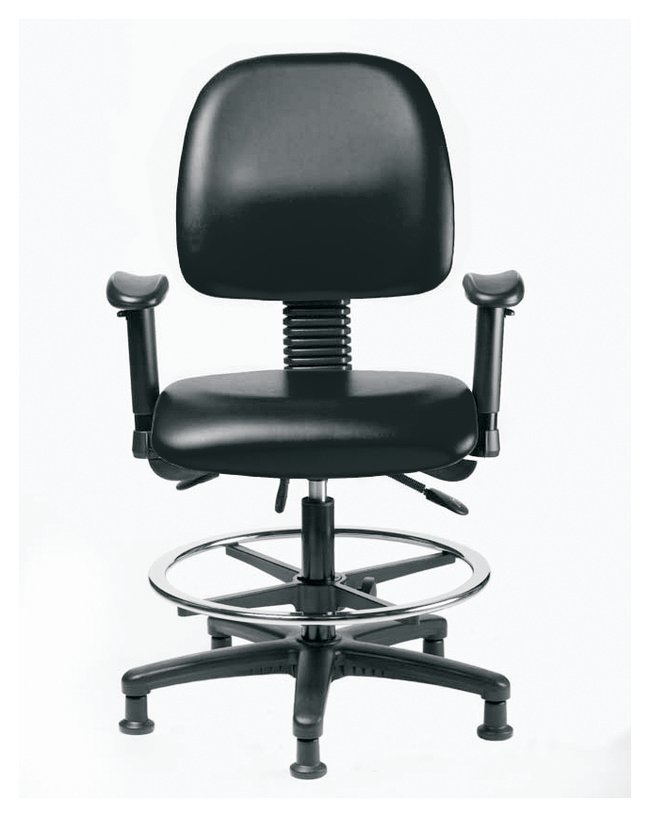 Fisherbrand™ Vinyl Chairs with Medium Back are height adjustable for 36 in.work surfaces and feature ergonomic adjustments, larger back, adjustable arms, chrome adjustable foot ring, and stationary glides. Antibacterial/Antifungal Grade B vinyl in a variety of colors will suit any work space.
