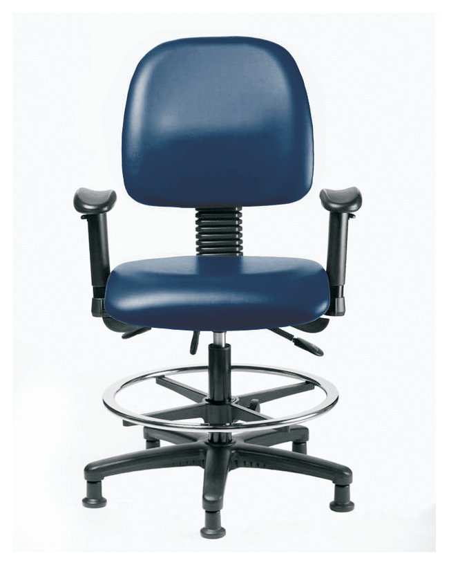 Fisherbrand™ Vinyl Chairs with Medium Back are height adjustable for 36 in.work surfaces and feature ergonomic adjustments, larger back, adjustable arms, chrome adjustable foot ring, and stationary glides. Antibacterial/Antifungal Grade B vinyl in a variety of colors will suit any work space.