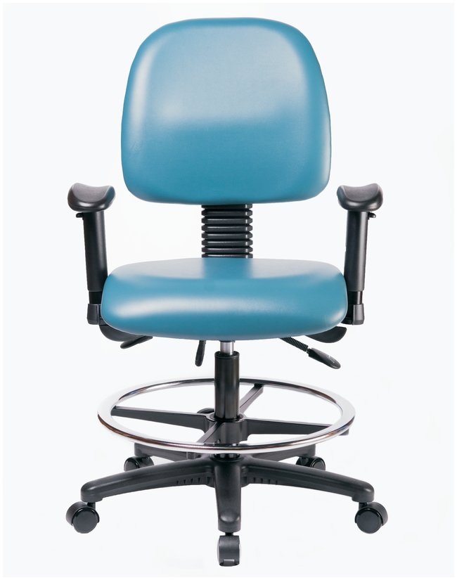 Fisherbrand™ Vinyl Chairs with Medium Back are height adjustable for 36 in.work surfaces & feature ergonomic adjustments, larger back, adjustable arms, chrome adjustable foot ring, & self-braking casters. Antibacterial/Antifungal Grade B vinyl in a variety of colors will suit any work space.
