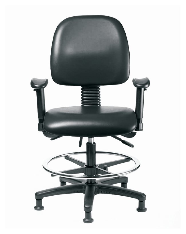 Vinyl Chair - Med Bench Height with Medium Back, Seat Tilt, Adj Arms, Chrome Foot Ring, and Stationary Glides in Grade B Vinyl, Each
