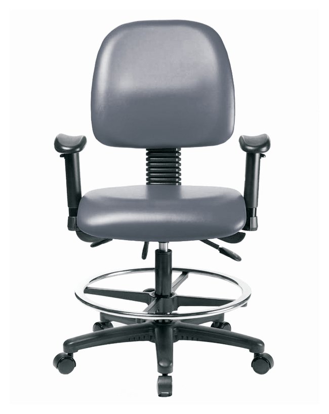 Fisherbrand™ Vinyl Chairs with Medium Back are height adjustable for 36 in.work surfaces and feature ergonomic adjustments, larger back, adjustable arms, chrome adjustable foot ring, and self-braking casters. Antibacterial/Antifungal Grade B vinyl in a variety of colors will suit any work space.
