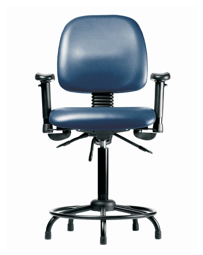 Fisherbrand™ Vinyl Chairs with Medium Back and Round Tube Base is height adjustable for 36 in. work surfaces and feature ergonomic adjustments, fixed foot ring, adjustable arms, and Stationary glides. Antibacterial/Antifungal Grade B vinyl in a variety of colors will suit any work space.