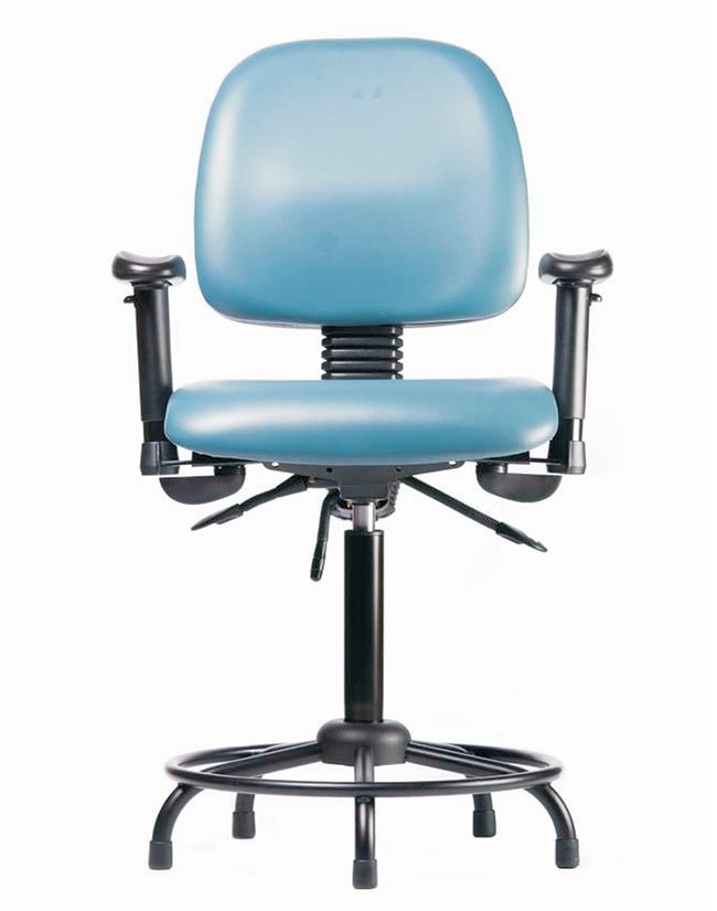 Fisherbrand™ Vinyl Chairs with Medium Back and Round Tube Base is height adjustable for 36 in. work surfaces and feature ergonomic adjustments, fixed foot ring, adjustable arms, and Stationary glides. Antibacterial/Antifungal Grade B vinyl in a variety of colors will suit any work space.