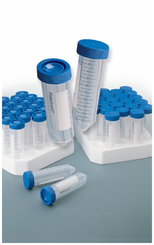 Fisherbrand™ 50mL Easy Reader™ Plastic Centrifuge Tubes are made of durable, chemical-resistant, clear polypropylene. Withstand speed of up to 15,000 x GBlack printed graduations are marked in 5mL increments from 5 to 50mLLarge white marking area makes labeling samples easyWith conical bottomsTubes are sterilized by gamma radiationNonpyrogenicThe lowest recommended working temperature (i.e. while centrifuging) is 0oC.For storage, the polypropylene used in the tube body is stable as low as -80oC, however the limits for low temperature storage will vary depending on the solution being stored as well as the storage conditionsTwo Cap StylesBoth styles offer secure, leak-resistant sealsBlue plug-seal closure features double-start thread design for an exceptionally tight sealFlat-top caps offer faster handling and allow you to label the top of the tubeThis product(s) resides on a Fisher Scientific GSA or VA contract. If you are viewing this page as a nonregistered user, the price(s) displayed is List Price. To view your GSA or VA contract pricing, log in using your account number, or become a registered user by contacting one of our Customer Service teams. You can also view your contract price by searching for this item(s) on GSA Advantage. To place an order, contact Fisher Scientific Customer Service.