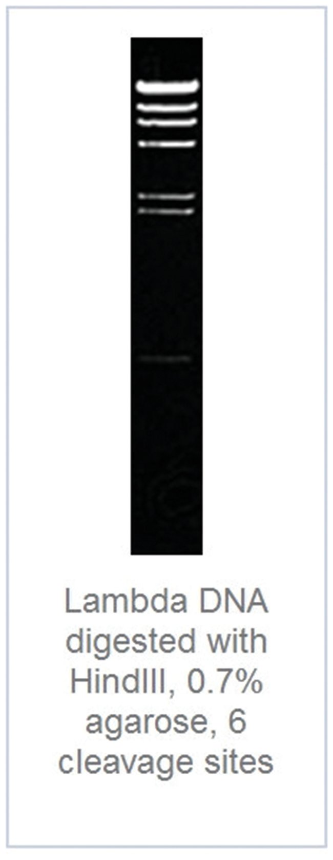 HindIII (10 U/µL), The HindIII restriction enzyme recognizes A^AGCTT sites and cuts best at 37°C in R buffer, Each