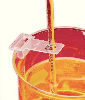 HOLDER, PP, THERMOMETER, 3/PKG, 36/CASE^ This convenient holder clips onto the edge of a beaker or other vessel and holds a thermometer vertically near the side of the container for safe, easy reading.