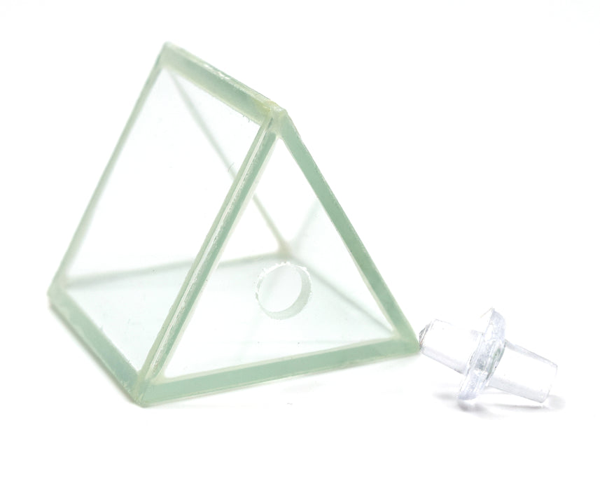 Hollow glass prism, made from glass plates properly cemented. Size 38 x 38 prism. Stopper included. Excellent tool for optical experimentation, as well as for studying Snells Law of Refraction. Change the liquids or gases in the cube to change the refraction properties.