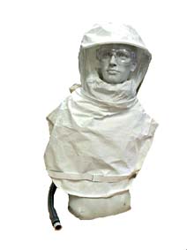 Hood Tychem^ Hood with oversized lens and long inner and outer bib offers an inflatable neck cuff design for a positive custom seal around neck. Air is directed through a three-channel system to help promote curvature of the hood for a better fit users head.