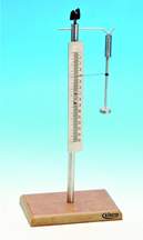 15cm mirror scale is marked in millimeters and mounted on a sturdy 30 cm. support rod and wooden base Mirror adjusts to prevent parallax error Hook attached to rod supports a coiled spring with mass hanger and indicator
