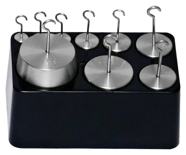 The design of the hook weight allows the bottom hook to be recessed in the bottom so the hook weights can be set on a flat surface.Adjusted to tolerances specified by ANSI™/ASTM™ Class 7Weight sets are supplied in an open plastic storage case