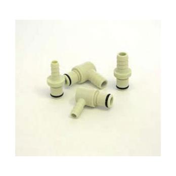 Hose barb fitting to quick connect adaptersNalge 2159 seriesProvides multiple connection to the quick filling closure portsUltimate in versatility and adaptability in creating vacuum trap type systems. Available in straight or elbow design to fit 1/4” or 3/8” tubing ID. (Tubing not included).