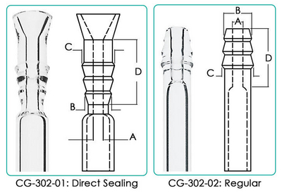 HOSE CONNECTION, GLASSBLOWERS, MICRO^ AxBxCxD=3.5x8x10x18mm. No of Rings: 3; Type: Regular. Used to construct small scale apparatus. Available in direct sealing or regular style. Serrations are tooled on either end of an 8in. length of 8mm O.D.x1.5mm wall tubing.