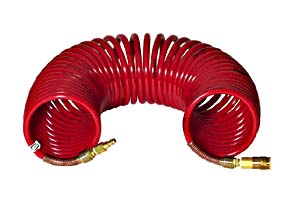 Coiled Hose^ A 25 foot coiled hose with an Industrial Interchange QD and nipple.